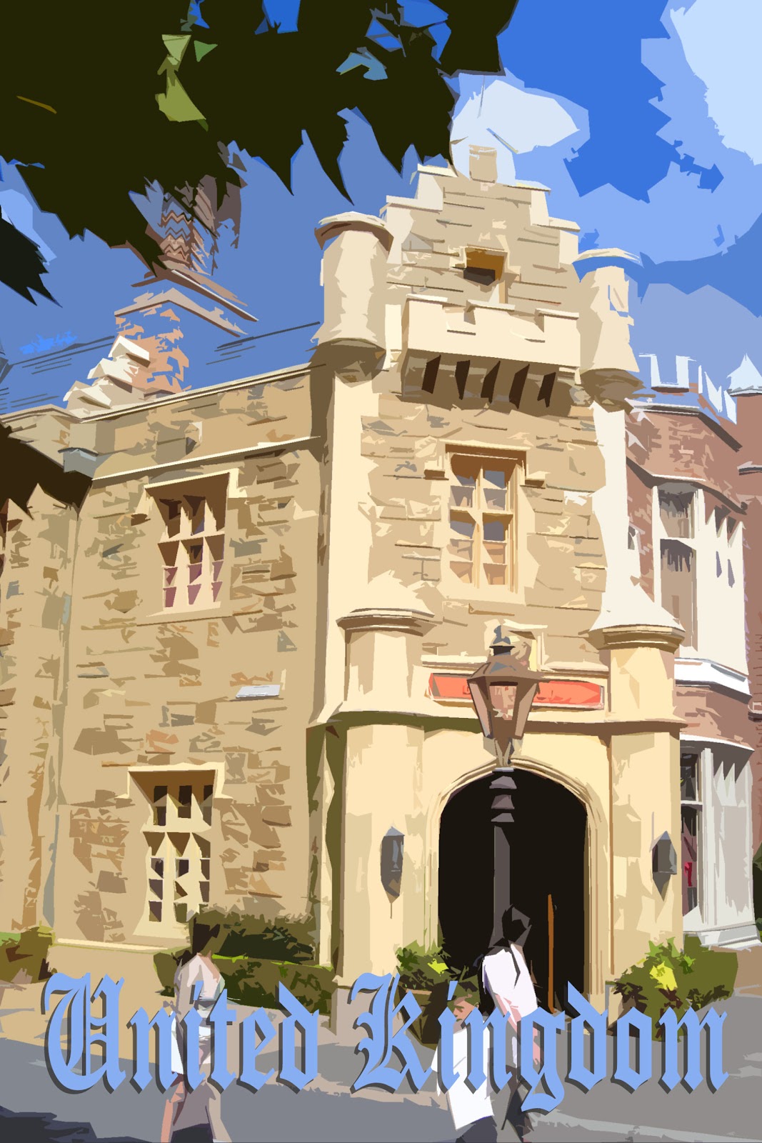 This was by far the hardest the travel posters to do and honestly I'm not happy with it. I didn't have any photos of the pavillion to work with that were particularly interesting and that is at least partially because of all the World Showcase pavillions, this is the most boring architecturally.